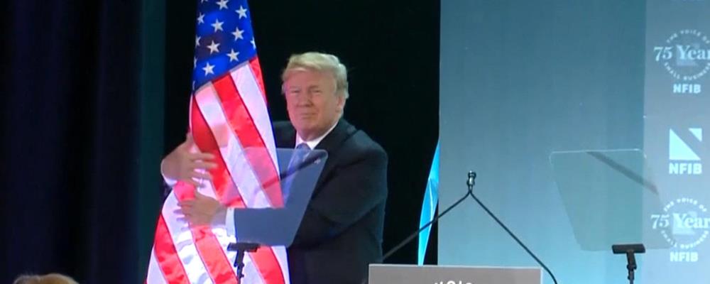 Este martes el Presidente de los Estados Unidos dio un discurso frente a un grupo de empresarios, donde defendió su tan polémica medida de «tolerancia cero» en inmigración». Pero lo que llamó la atención fue el abrazo que le dio a la bandera.