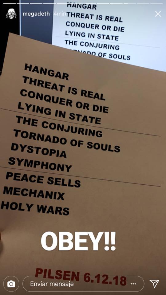 Noticias Megadeth sorprende a sus fanáticos y vuelve a tocar «The Conjuring» después de 17 años El polémico track de "Peace Sells... But Who's Buying?" no era interpretado desde la gira de "The World Needs A Hero" de 2001. Por Hector Muñoz Tapia | 12 Jun, 2018. 17:36 hrs El polémico track de «Peace Sells… But Who’s Buying?» no era interpretado desde la gira de «The World Needs A Hero» de 2001. Esta semana, Megadeth sorprendió a todos sus fanáticos en el Home Monitoring Arena de República Checa al interpretar «The Conjuring», polémica canción del álbum «Peace Sells… But Who’s Buying?» de 1986, después de 17 años. La última vez que la banda de Dave Mustaine interpretó el tema fue durante su gira de promoción de «The World Needs A Hero» de 2001. Por el momento, no hay un registro completo de la canción en vivo, pero el baterista Dirk Verbeuren publicó un breve video en el que se puede apreciar a Dave Mustaine cantando «The Conjuring». Megadeth también lo confirmó a través de sus insta stories. Megadeth Dennis Rodman agradece a Eddie Vedder por haber hecho posible encuentro entre Donald Trump y Kim Jong Un Marilyn Manson revela cuál es la canción que más le enorgullece Sigue a FUTURO.cl en Google Discover Recibe nuestros contenidos directamente en tu feed. Seguir en Google Contenido patrocinado