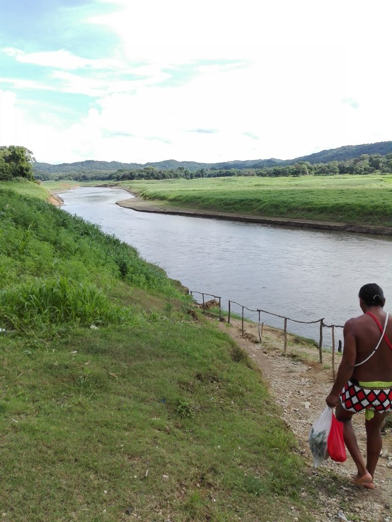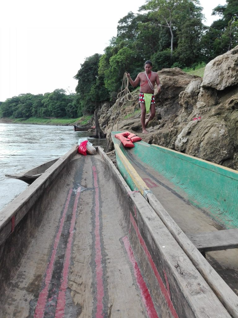 Para llegar ahí hay que ir con un guía que conozca el lugar, en un vehículo 4×4 y con dinero para pagar la entrada a la comunidad y dejarle una propina al lanchero. Al llegar al lugar me esperaba el lanchero que estaba vestido con los atuendos de su cultura, subí a una piragua con motor que me llevó a la primera comunidad, ahí me esperaba un grupo de hombres que me recibieron con música interpretada por ellos, posteriormente fui invitado a una charla que dio una de las mujeres de la comunidad.