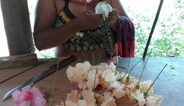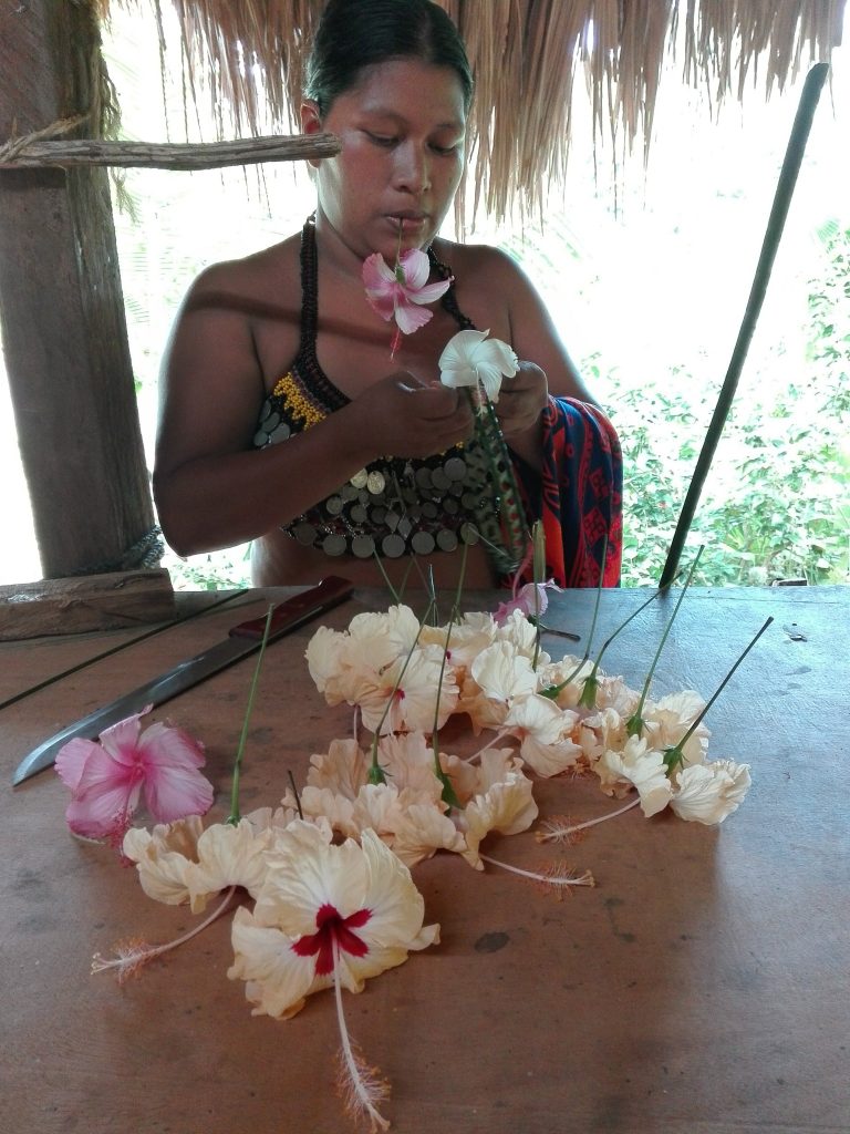 Las mujeres de la comunidad son las encargadas de cocinar y de relatar la historia de la comunidad Emberá, los hombres se hacen cargo de la construcción de las casas y de la caza diaria.