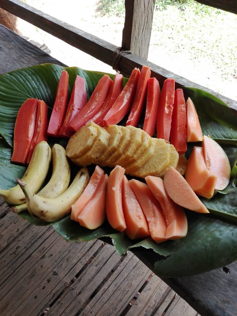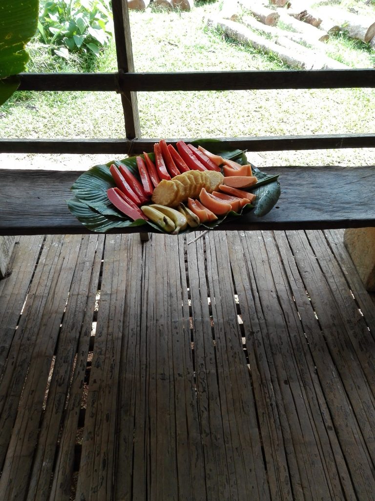 Según el guía, es importante llevar frutas y alimentos como arroz o legumbres, ya que ellos tienen tierras sólo para cultivar lo justo y necesario ya que el gobierno convirtió en parque el lugar donde ellos habitan.