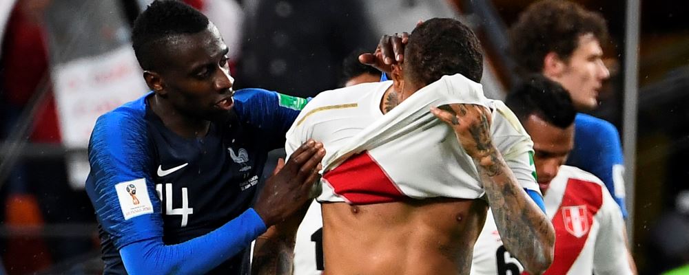 Blaise Matuidi acudió a la ayuda del capitán peruano, que no pudo contener las lágrimas tras la derrota ante Francia.