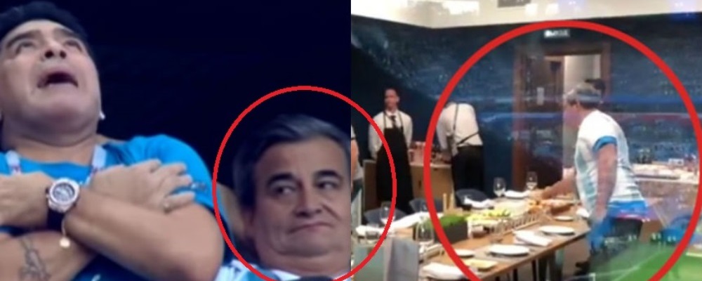 Tanto así que cuando el ídolo argentino se descompensó y debió ser llevado al interior del palco, el curioso personaje no parecía alterado ni preocupado. Incluso se dio el tiempo de comer una empanada que había en la mesa.