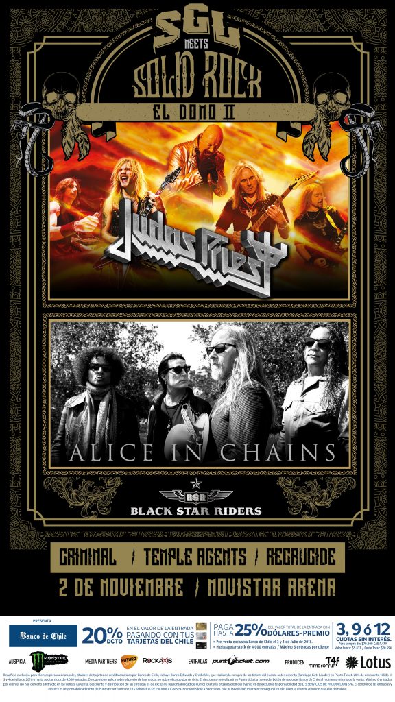 Una vez más, la localía se ejerce en El Domo, en el Movistar Arena del Parque O’Higgins, se realizará el viernes 2 de noviembre, y los nombres convocados esta vez son nada menos que JUDAS PRIEST, ALICE IN CHAINS, BLACK STAR RIDERS, CRIMINAL, RECRUCIDE y TEMPLE AGENTS.