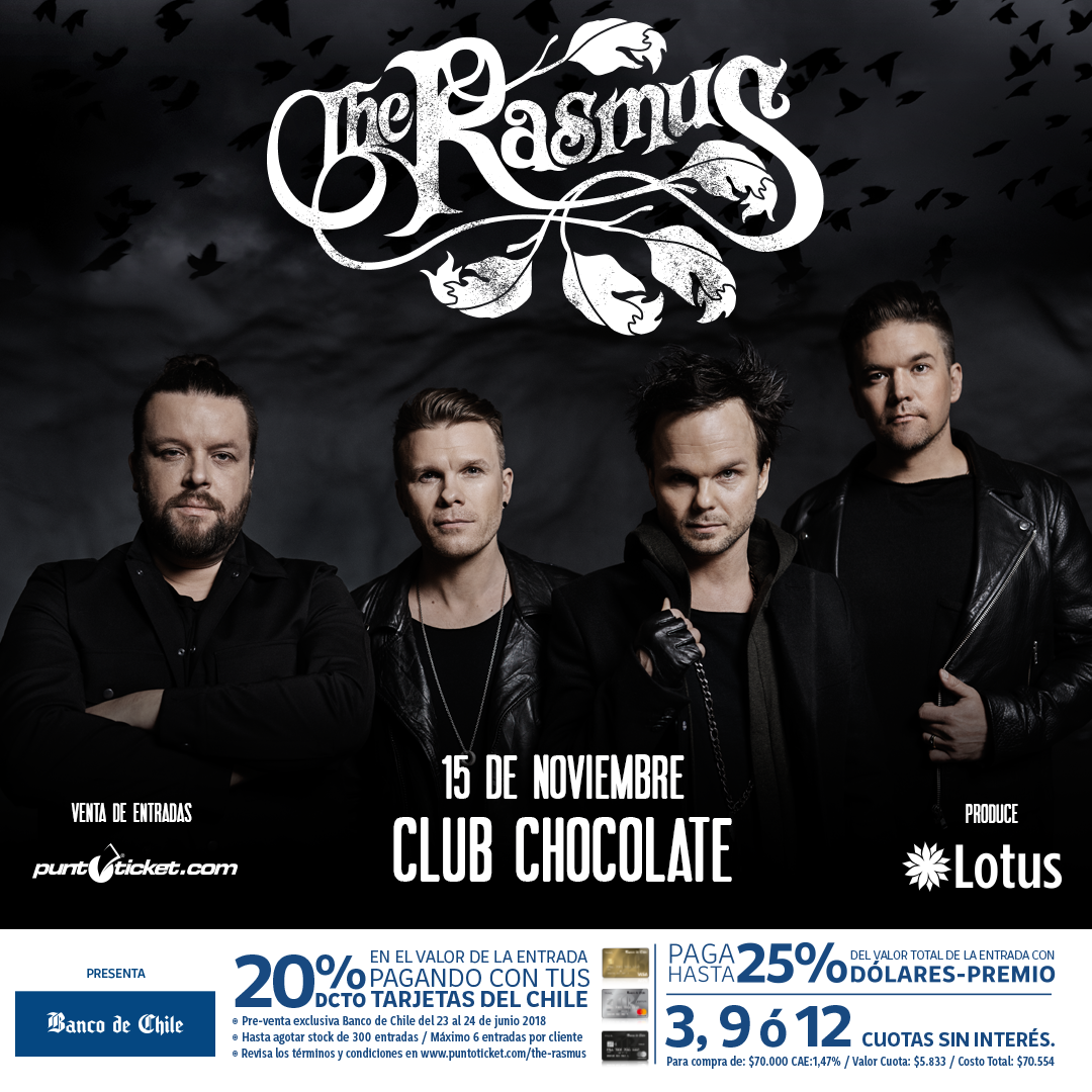 The Rasmus confirma regreso a Chile – jueves 15 de noviembre, Club Chocolate
