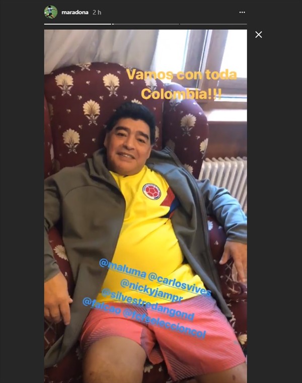 ACTITUD FUTURO El apoyo de Maradona a Colombia en el partido ante Inglaterra Por ADN.cl - Colombia disputó con Inglaterra el último cupo a los cuartos de final del Mundial en el Otkrytie Arena. Por Equipo Futuro | 03 Jul, 2018. 18:23 hrs El «Pelusa» compartió una imagen con la camiseta cafetera. Por ADN.cl Colombia disputa con Inglaterra el último cupo a los cuartos de final del Mundial en el Otkrytie Arena. En la previa del partido, Diego Maradona compartió una imagen suya con la camiseta cafetera y le mandó un mensaje de aliento al cuadro de José Pékerman. maradona Mundial Rusia 2018 A Saddam Hussein lo habrían capturado gracias a Mark Hoppus, de Blink 182 Contrato Social Sigue a FUTURO.cl en Google Discover Recibe nuestros contenidos directamente en tu feed. Seguir en Google Contenido patrocinado