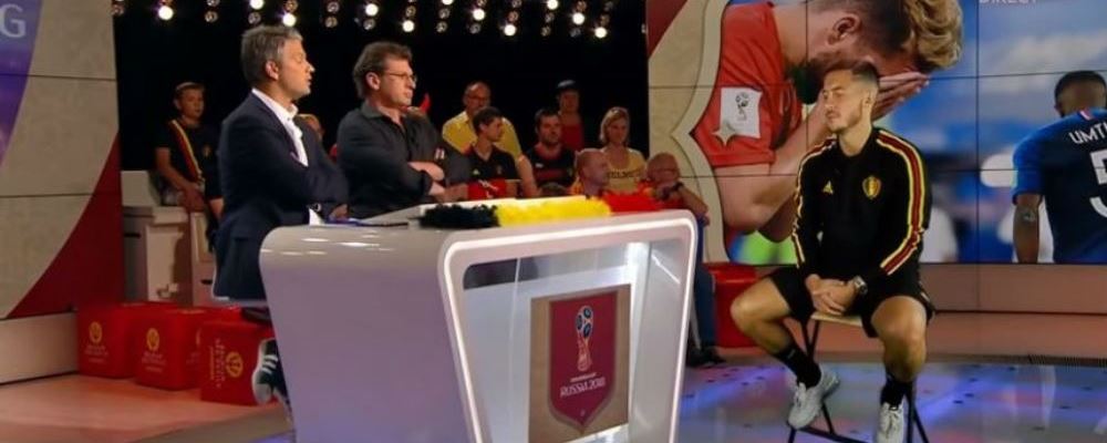Los televidentes pudieron ver a Eden Hazard sentado en un estudio de televisión a los minutos de terminada la semifinal ante Francia.