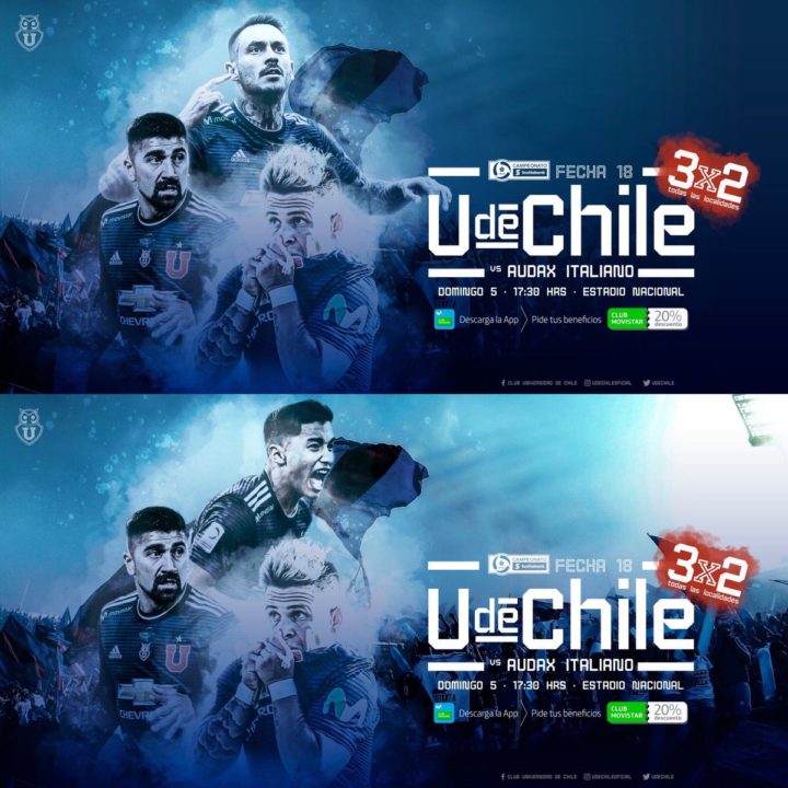 Resulta que los azules tienen publicadas imágenes que anuncian la promoción 3×2 en la venta de entradas para el partido que disputarán frente a Audax Italiano el domingo a las 17:30 horas y Pinilla ya no aparece en estas.