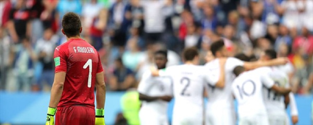 Los galos impusieron su ritmo de juego y cosechó sus frutos al minuto ’40, gracias a un tiro libre de Antoine Griezmann que interceptó Raphaël Varane en el aire y la colocó de cabeza en un rincón imposible para Fernando Muslera.