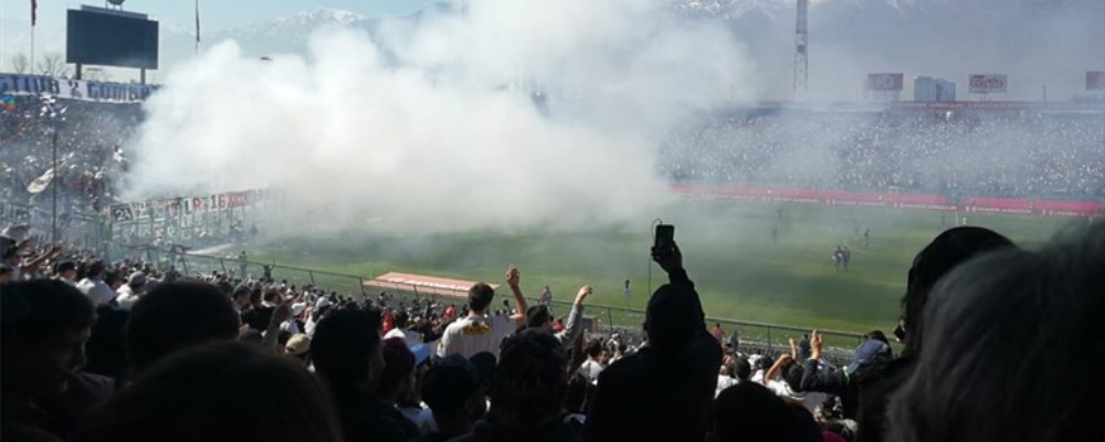 Cerca de 10 minutos demoró el humo en salir de la cancha, que afectó a jugadores de Colo Colo y de la U por igual.