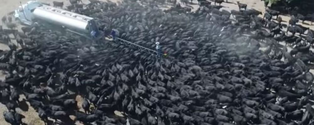 Las imágenes reveladas por Fox News muestran a una manada de 1.300 vacas que rodean un camión cisterna cargado con agua destinada a su hidratación.