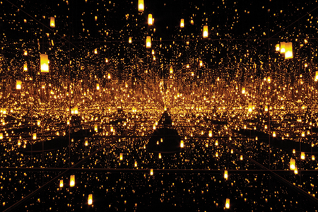 La publicación contenía una foto de un afiche en una pared que decía: “Habitación con espejo infinito: secuelas de la aniquilación de la eternidad”. (en inglés, Infinity Mirrored Room: Aftermath of Obliteration of Eternity)