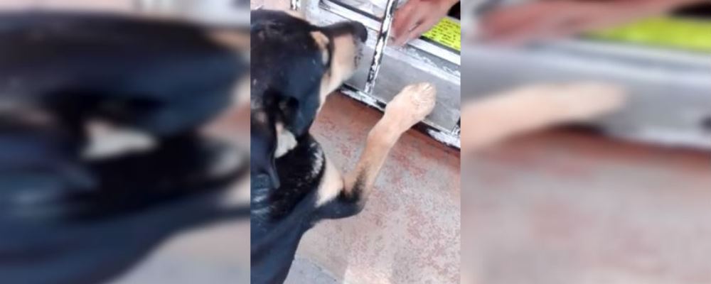 El animalito es un perro vagabundo que vive en las calles de México y que ha aprendido a pedir una moneda para poder comprar una salchicha en un negocio.