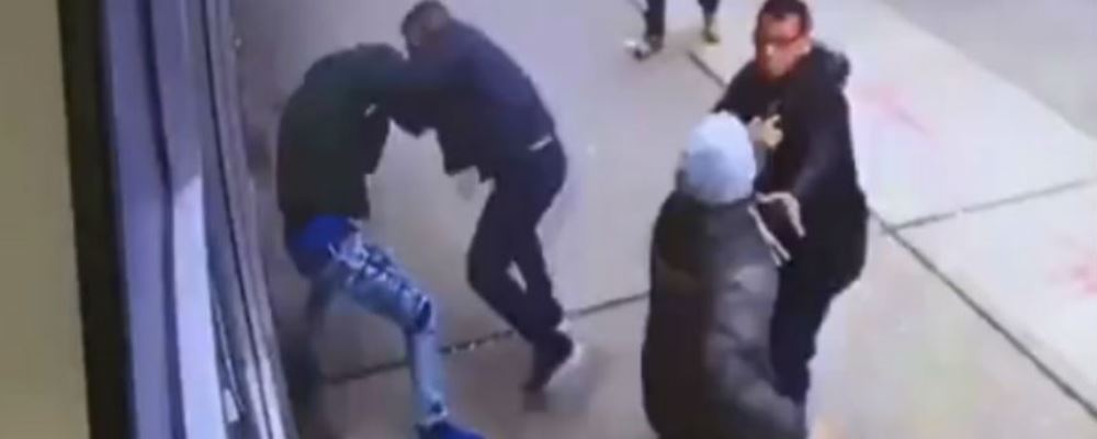 Dos hombres que pasaron por el lugar los miraron de forma amenazante. Uno de los amigos de Gordon les respondió y uno de los sujetos le lanzó un puñetazo, lo que dio paso a una brutal riña, que fue registrada por las cámaras de seguridad del local.