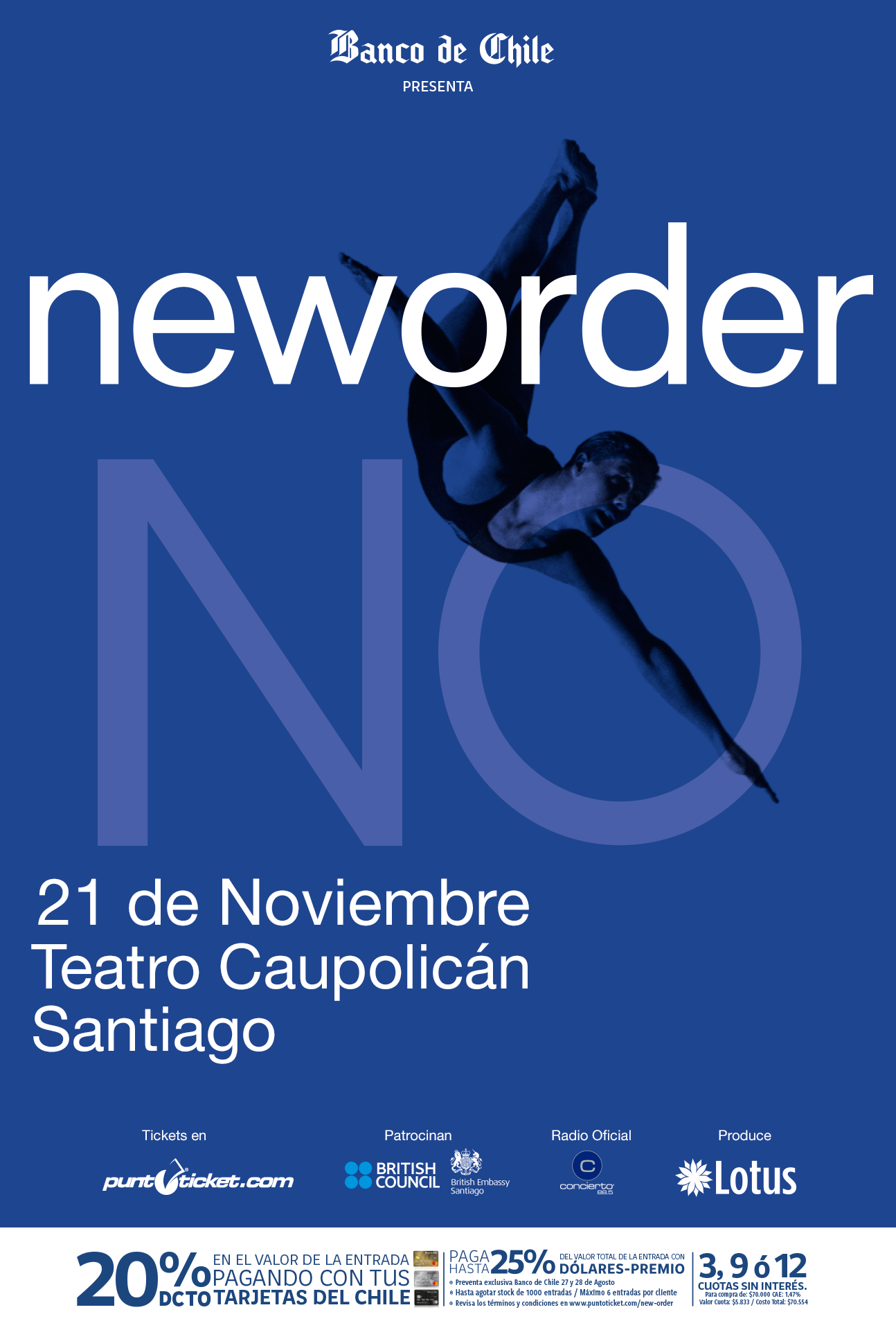 A dos años de su última visita a nuestro país, New Order tiene agendado regreso a Chile para un show que se realizará el miércoles 21 de noviembre, en el Teatro Caupolicán.