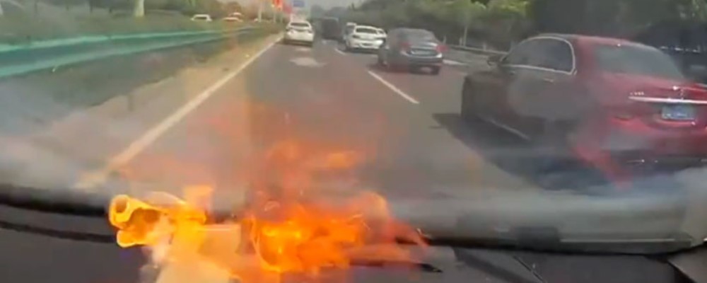 La mujer se echa a llorar y frena por un momento, pero luego sigue conduciendo para evitar obstruir el tráfico. Sin embargo, solo unos 20 segundos después, el celular que aún humeaba estalló en una bola de fuego, dejando a la mujer gritando sin otra opción que parar el auto.