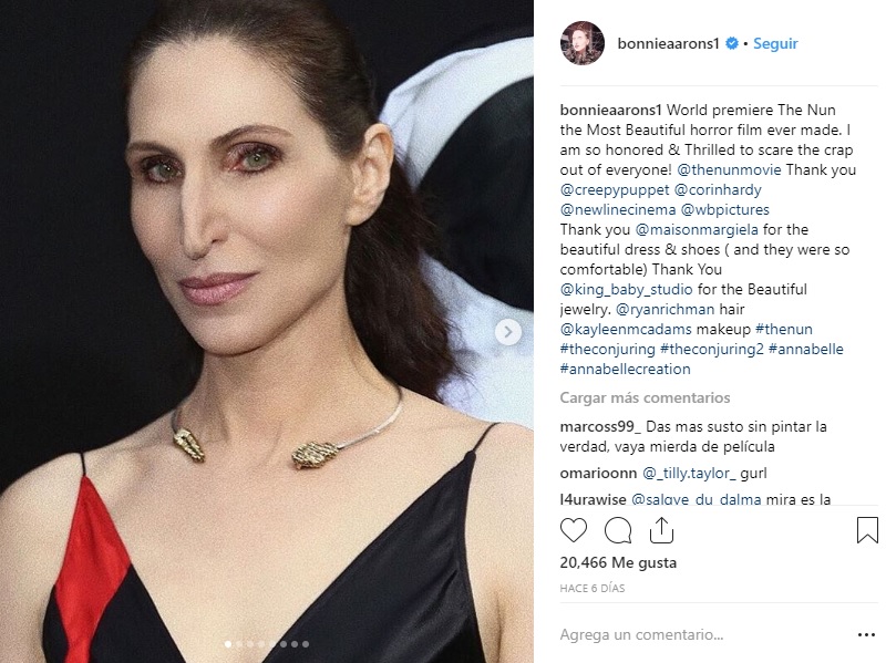 Aunque su personaje más famoso es esta monja que hace temer ya desde el mismísimo póster, Aarons tiene una larga carrera en Hollywood. Ha trabajado en películas como “El diario de la Princesa”, “Mulholland Drive” y “El vencedor”.