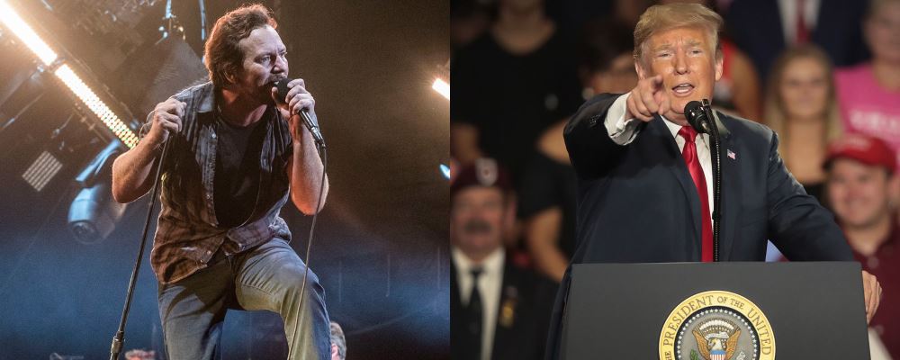 Donald Trump Jr. respondió al poster de Pearl Jam mostrando a la Casa Blanca en llamas y a su padre muerto.