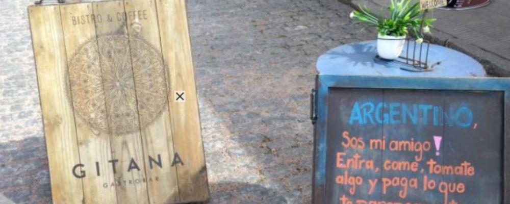 «Argentino, ¡sos mi amigo! Entrá, comé, tomate algo y pagá lo que te parezca justo y esté a tu alcance. Hoy por ti, mañana por mí», decía una pizarra en el ingreso del local.