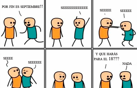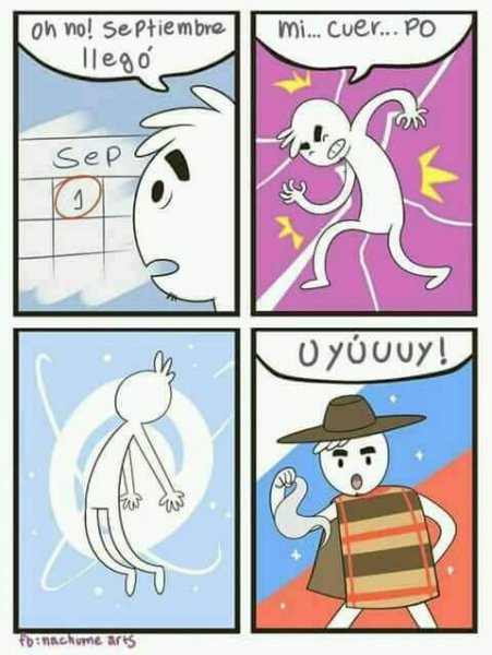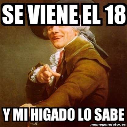 ACTITUD FUTURO ESPECIAL // Los memes para recibir las Fiestas Patrias Hoy comenzamos un fin de semana extra largo de festejo dieciochero. Por Hector Muñoz Tapia | 14 Sep, 2018. 09:16 hrs Hoy comenzamos un fin de semana extra largo de festejo dieciochero. Ha llegado la época del año preferida por casi todo el país. Las Fiestas Patrias se han inaugurado y la población de Chile ya está lista para celebrar el 18 de septiembre como ya es una tradición, entre asados, empanadas, vino, cerveza, terremotos y, por supuesto, memes. Para que acompañes tus asados durante estos cinco días seguidos de festejo dieciochero, te dejamos algunos de los mejores que andan dando vueltas… Fiestas Patrias memes Spotify lanza "Under The Staircase", registro de show secreto de Paul McCartney en Abbey Road Jorge Escobar, gerente general de la cadena "El Carnicero": las recomendaciones de cortes de carne y sus preparaciones Sigue a FUTURO.cl en Google Discover Recibe nuestros contenidos directamente en tu feed. Seguir en Google Contenido patrocinado