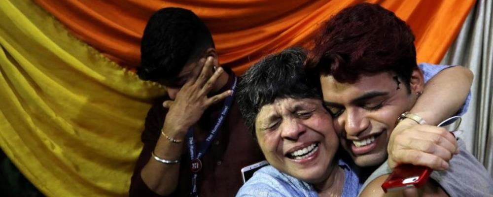 Imágenes difundidas por la televisión india muestran a militantes de la causa homosexual llorando de alegría y abrazándose, tras la lectura de la sentencia.