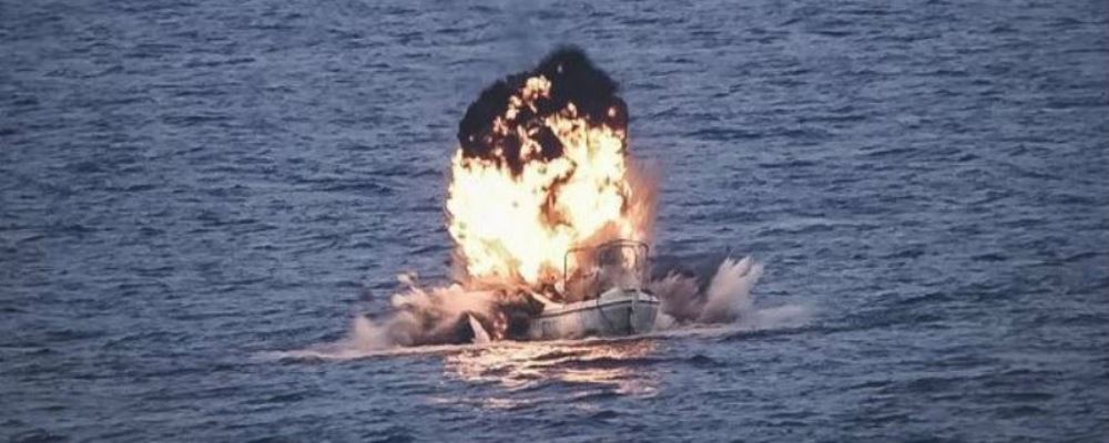 Después de la revisión, la pequeña embarcación fue destruida a través de una explosión controlada en un lugar seguro, como se puede ver en las imágenes.