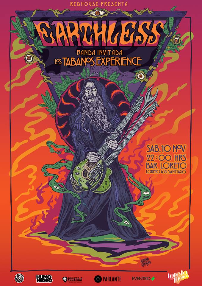 Noticias Earthless cambia de recinto para concierto en Santiago El grupo de rock psicodélico se presenta por primera vez en Chile en noviembre, en el Bar Loreto. Por Jorge Lagas | 16 Oct, 2018. 12:22 hrs Información importante sobre el concierto de la banda de rock psicodélico Earthless en Santiago, que cambió de recinto: originalmente había sido anunciado para el Espacio San Diego, pero finalmente será en el Bar Loreto, calle Loreto #435, barrio Bellavista. El concierto es el sábado 10 de noviembre y a estas alturas se agotó la preventa 1. Los últimos tickets están en Eventrid.cl, tiendas Mucky Rock (Eurocentro) y Respect (Portal Lyon), a $20.000. Invitados: la banda nacional The Tábanos Experience. Actor de "Piratas del Caribe" donará su fortuna para vivir como una persona normal GBH suma fecha en Santiago - Viernes 19 de octubre, Hangar Subterráneo Sigue a FUTURO.cl en Google Discover Recibe nuestros contenidos directamente en tu feed. Seguir en Google Contenido patrocinado