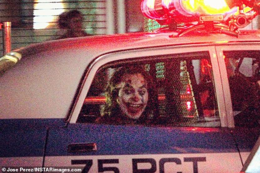 Nuevas imágenes del Joker de Joaquin Phoenix han sorprendido a los fanáticos de DC y han generado todo tipo de teorías. Las fotografías compartidas originalmente por Daily Mail muestran al Payaso Rey del Crimen en una patrulla de policía, con su risa macabra y divertida de siempre, pero no está solo, pues hay otras imágenes que muestran a un sujeto con una máscara de payaso sosteniendo un bat. Podría tratarse de uno de sus secuaces.