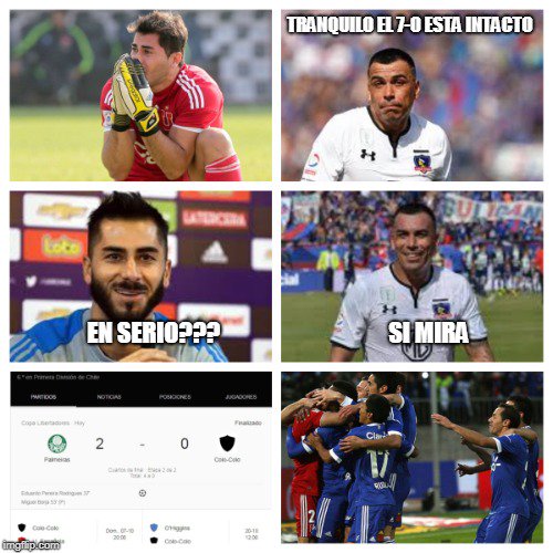 ACTITUD FUTURO ESPECIAL // Los memes de la eliminación de Colo Colo en Copa Libertadores El cacique no pudo contra Palmeiras y tras perder 2-0 como visita dijo adiós al sueño. Por Hector Muñoz Tapia | 03 Oct, 2018. 23:59 hrs El cacique no pudo contra Palmeiras y tras perder 2-0 como visita dijo adiós al sueño. En el Allianz Parque de Sao Paulo, Colo Colo perdió ante Palmeiras. Los dirigidos por Héctor Tapia cayeron por dos goles a cero y quedaron eliminados de la Copa Libertadores. Las reacciones por el desempeño del cuadro popular no se hicieron esperar en redes sociales, donde sus usuarios realizaron burlas por la derrota alba con suculentos memes. Revisa los mejores a continuación… Colo Colo Copa Libertadores memes Palmeiras El noble gesto de Floyd Mayweather con un indigente que se convirtió en desafío viral La Carpa del Diablo – Capítulo 196 Sigue a FUTURO.cl en Google Discover Recibe nuestros contenidos directamente en tu feed. Seguir en Google Contenido patrocinado