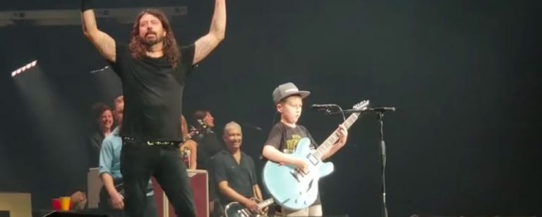 Una vez que el exbaterista de Nirvana recibe en el escenario al pequeño, le pregunta si sabe tocar guitarra, a lo que el chico responde que sí. «¿Qué canciones te sabes?», le preguntó al niño, a lo que respondió: «Sé un montón de canciones de Metallica».