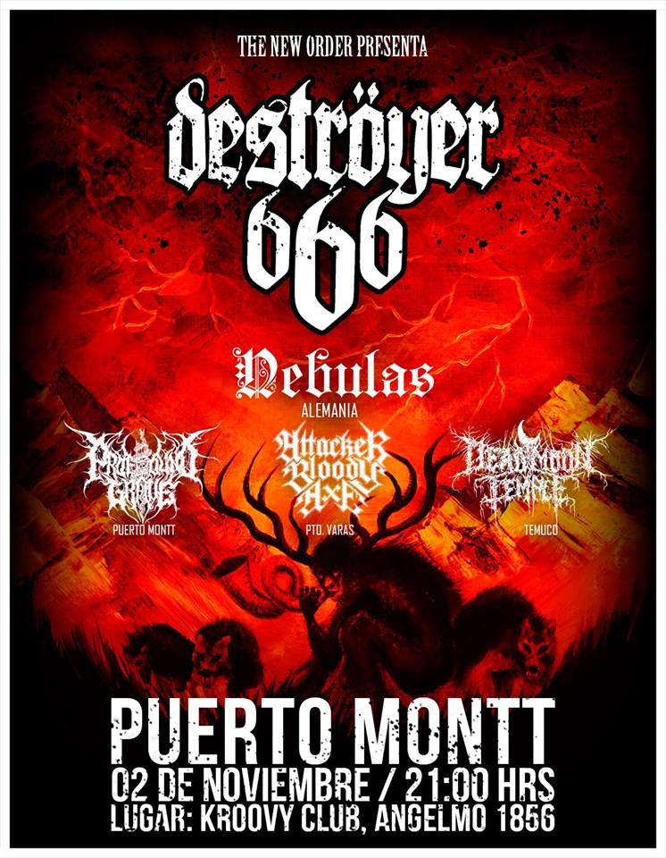 Y al día siguiente, viernes 2 de noviembre, Deströyer 666 estará también en Puerto Montt, donde nos escuchan en la 105.9. Harán lo suyo en el escenario del Kroovy Club. Más detalles en los afiches más abajo.