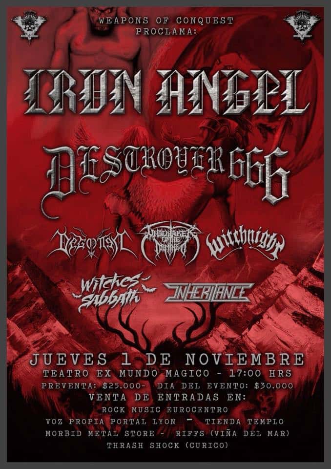 Iron Angel y Deströyer 666 se presentan juntos en Santiago – Jueves 1 de noviembre, Ex Teatro Mundo Mágico