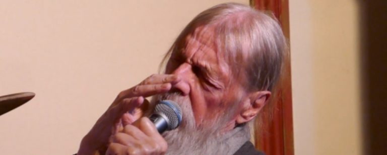 El hombre de 90 años interpreta un acto de música experimental junto a un piano y batería.