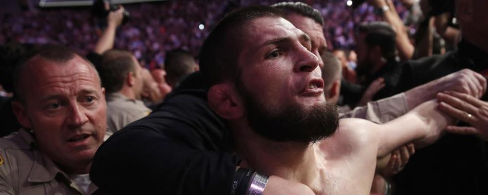 Nurmagomédov derrotó a McGregor por sumisión en el cuarto asalto. Después de ser separados por el árbitro, Khabib empezó a gritar primero a McGregor, y después a su equipo. En un momento, arrojó su protector bucal contra el alambrado en dirección a donde estaba el equipo del luchador irlandés. Unos instantes después de este intercambio de palabras, Nurmagomédov saltó la verja que rodea el octágono y se abalanzó contra los integrantes de la esquina de su rival, incluido el luchador de MMA Dillon Danis.