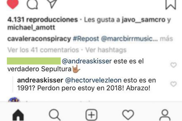 Noticias Andreas Kisser responde a fan que lo etiquetó en publicación de Cavalera Conspiracy Con un mensaje implícito a los hermanos, el guitarrista de Sepultura escribió en Instagram ante el provocativo post de un seguidor. Por Diego Puebla Hernández | 27 Nov, 2018. 13:00 hrs Con un mensaje implícito a los hermanos, el guitarrista de Sepultura escribió en Instagram ante el provocativo post de un seguidor. En un reciente video publicado a través de la cuenta oficial de Instagram de Cavalera Conspiracy, un fanático etiquetó a Andreas Kisser siguiendo con el comentario «este es el verdadero Sepultura» sin pensar que el propio guitarrista le iba a responder. ¿Esto es en 1991? Perdón pero estoy en el 2018. Abrazo!» fue la respuesta que le dio el músico brasilero al fanático a través de las redes sociales. Sepultura Jason Momoa "quita" a las novias de sus fans al momento de sacar fotografías Oficial: Final de Copa Libertadores se jugará fuera de Argentina Sigue a FUTURO.cl en Google Discover Recibe nuestros contenidos directamente en tu feed. Seguir en Google Contenido patrocinado