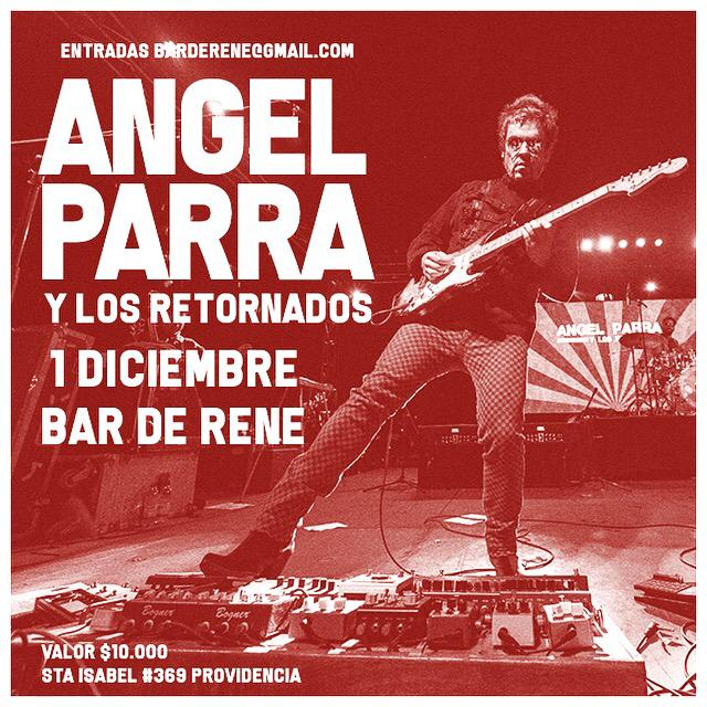 El valor de la entrada para el show de Ángel Parra y Los Retornados es de 10 mil pesos y las compras en línea a través del mail barderene@gmail.com.