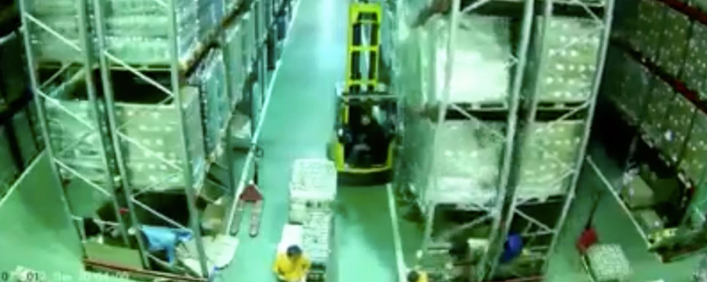 El conductor de un montacargas provocó el colapso de todo un gran almacén con solo un pequeño empujón contra una de las estanterías.