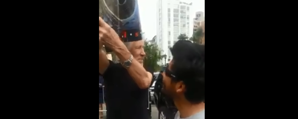 Un fanático latinoamericano pide una firma al músico en el poster del disco de 1995 de su ex banda Pink Floyd. Mira su reacción…