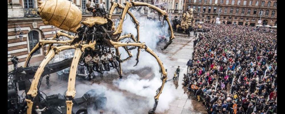 Los mitos de la antigua Grecia cobran vida para deleite de los vecinos de la ciudad francesa de Toulouse. La araña Ariane y el minotauro Asterion caminan entre un público sorprendido por las dimensiones de estos visitantes mecánicos que han tomado las calles. Estos gigantes de metal de casi 50 toneladas son los protagonistas de la nueva performance del grupo francés de teatro llamado La Máquina. Ella es una de las artistas que da vida a los colosos.