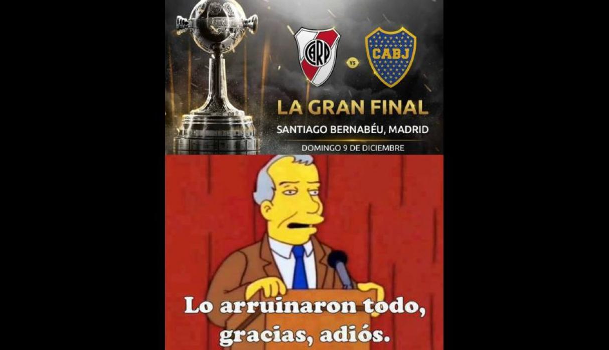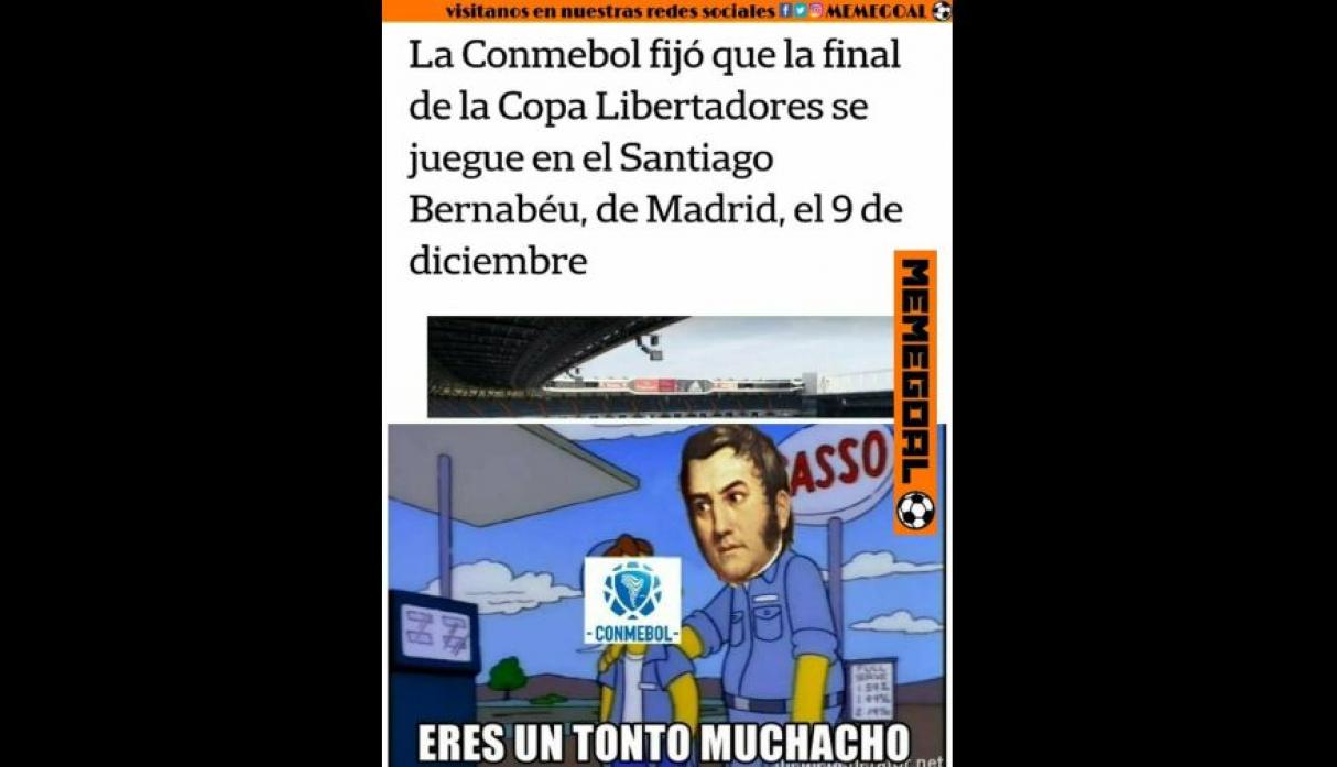 Tras el fallo del Tribunal Disciplinario, el presidente de la Conmebol, Alejandro Domínguez, anunció que la ciudad de Madrid albergará el domingo 9 de diciembre la final de la Copa Libertadores. Una decisión tan insólita que desató de inmediato una ola de burlas en las redes sociales.