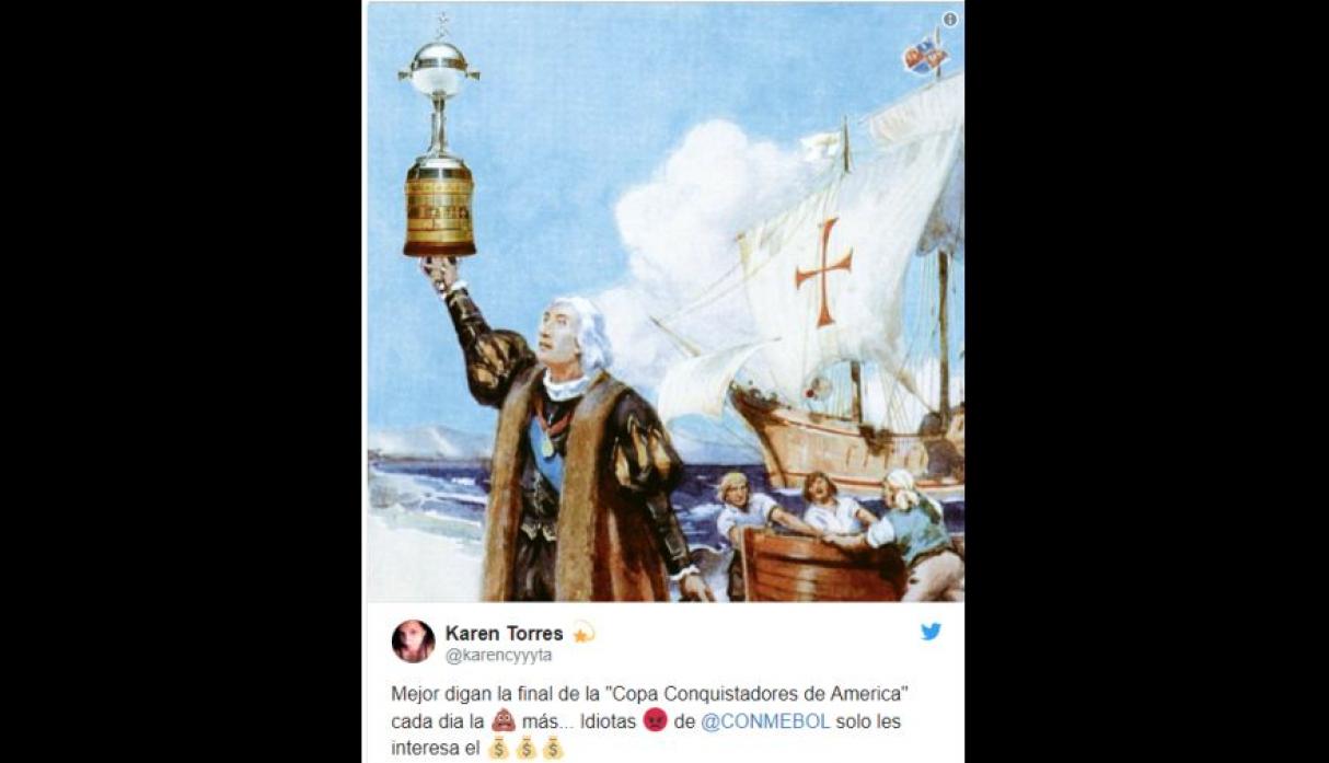 Que la final de un certamen bautizado en honor a quienes lucharon en las batallas por la independencia del continente que estaba gobernado por los españoles se juegue justamente en la capital del país ibérico fue el foco de las bromas de los internautas, con la Copa «Conquistadores» de América como tendencia en el mundo hispanoparlante.