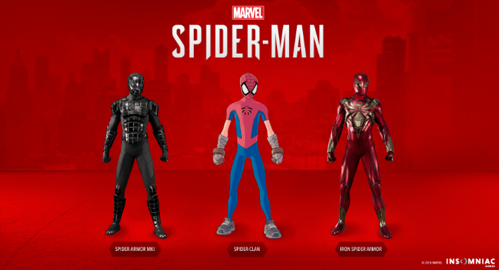 A diferencia del primer DLC, The Heist, donde Spider-Man obtuvo tres trajes nuevos, Insomniac agregó tres nuevos trajes para esta historia. Los fanáticos del videojuego tendrán la oportunidad de sumar los trajes de Iron Spider-Man, Armor MKI y Spider Clan, el cual pertenece al manga del amigable vecino.