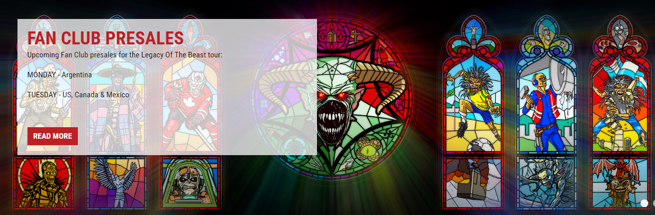 Para esto, su página oficial grafica con ilustraciones en la portada lo que serán sus tres conciertos en Argentina, Brasil y nuestro país. En ellos muestra a la mascota Eddie en tres vitrales, a la izquierda el monstruo posa con la camiseta de fútbol carioca y arriba el clásico Cristo Redentor. Para su versión trasandina en las alturas muestra un balón, y en el centro el amuleto de los británicos es plasmado rompiendo el obelisco con una mano y con la otra sosteniendo la bandera albiceleste. Y en su versión chilena, móais están en la parte superior y al medio Eddie vestido de trabajador en loza del aeropuerto con los colores patrios, es llevado al dibujo arreglando la turbina del avión recordando el accidente que tuvo el «Ed Force One» en suelo nacional.