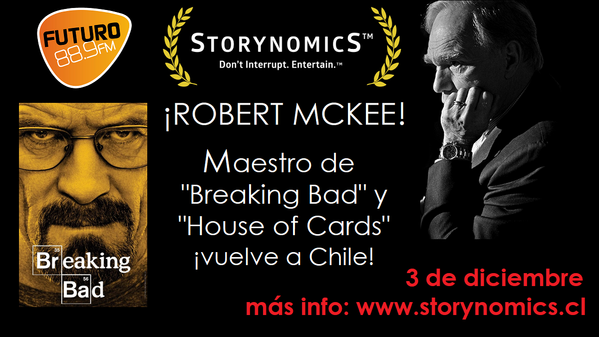 Regresa a Chile el legendario creador de la técnica de narrativa audiovisual más exitosa de la historia contemporánea, autor de la biblia del área, “El Guión”, y el maestro de los realizadores de series tan prominentes como “House of Cards”, “Breaking Bad” y “Game of Thrones”. La lista de ex alumnos de McKee que han impactado todo tipo de industrias es interminable e impresionante: desde el legendario David Bowie hasta el Director de “El Señor de los Anillos”; Peter Jackson.