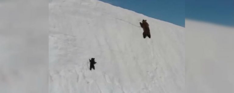 En el video se puede apreciara una mamá oso junto a su pequeña cría subiendo una empinada montaña cubierta de nieve. Mientras la madre sube sin mayor dificultad, el pequeño oso hace todos sus esfuerzos para intentar llegar a la cima. Sin embargo, en varias ocasiones se resbala y cae varios metros hacia abajo.