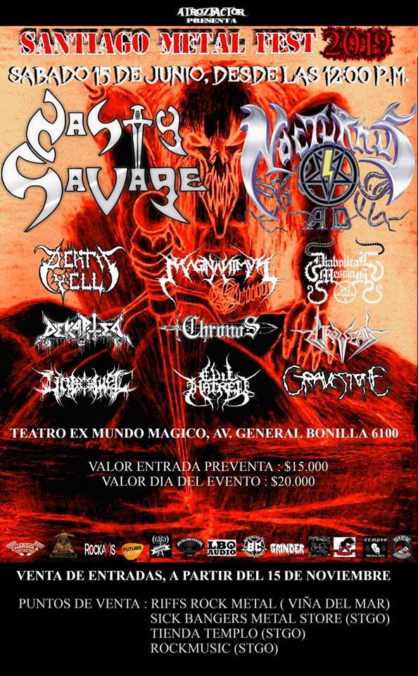 Ya están las coordenadas definitivas para el evento Santiago Metal Fest, que el 2019 encabezarán las bandas estadounidenses Nasty Savage y Nocturnus A.D.