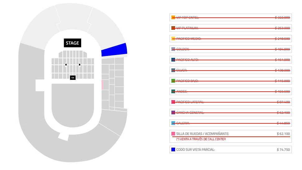 Se habilita Cono Sur Vista Parcial para el miércoles 14 de noviembre en el Estadio Nacional.
