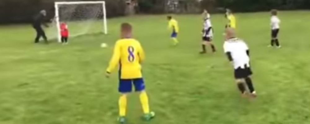 El sujeto ya ha sido calificado como «el padre del año» por su actitud. En las imágenes se ve al papá del niño arquero, del equipo Sub 8 de Bow Street FC, que participa en la liga del centro de Gales. El rival remata al arco y el niño distraído no atiende el remate hasta que su padre literalmente lo lanza sobre el suelo para rechazar el balón.