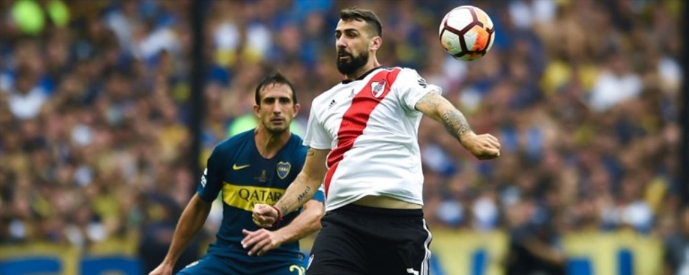 Revisa el centro al área e Izquierdoz desvía la pelota, metiéndola en su propio arco para marca el 2 a 2 parcial hasta el minuto en el Superclásico válido por la final ida de la Copa Libertadores.