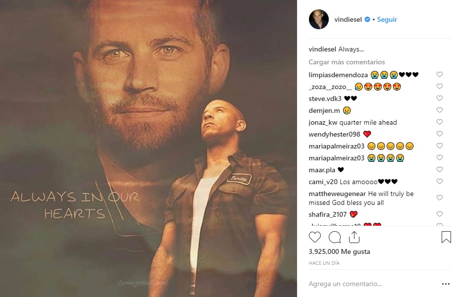 El actor de «Rápido y furioso» recordó a su compañero de elenco. La imagen tiene 4 millones de reacciones.